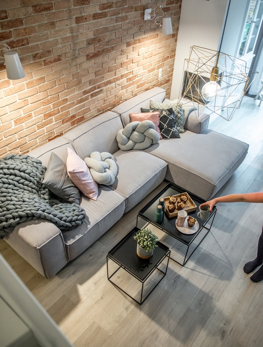 Следующее, что визуально изменит пространство – цвет мебели. Конечно, тут нужно опираться на общий дизайн комнаты и её цветовую гамму, но желательно, чтобы диван был выполнен в светлых тонах. Самый практичный вариант – светлый серый, он идеально впишется в современный и скандинавский стили. А разбавить монотонность помогут яркие декоративные подушки.