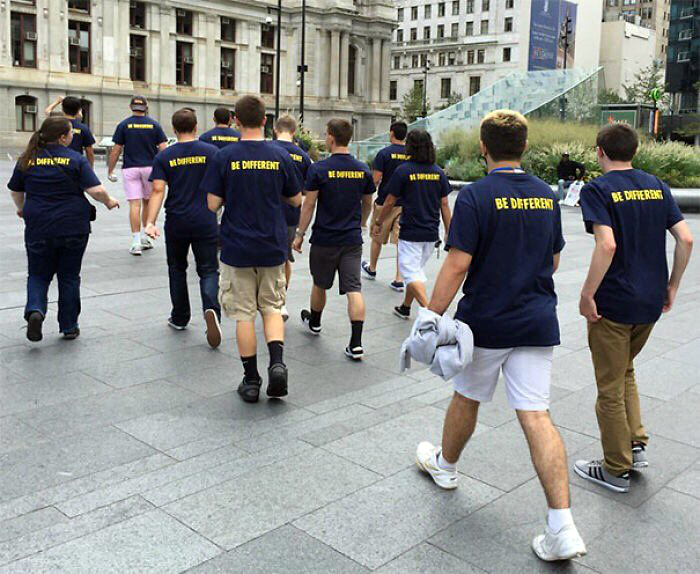 14. Странно, что группа людей, которые призывают отличатся, выглядят одинаково…