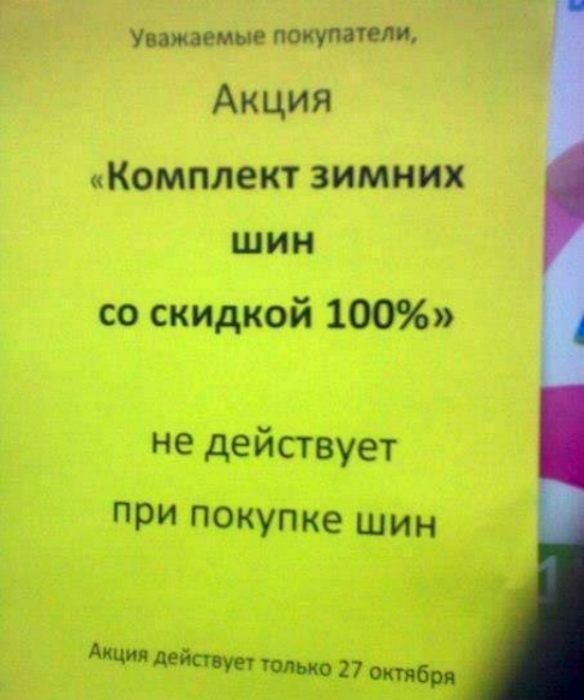 7. «Хм, скидка на шины не действует при покупке шин…»