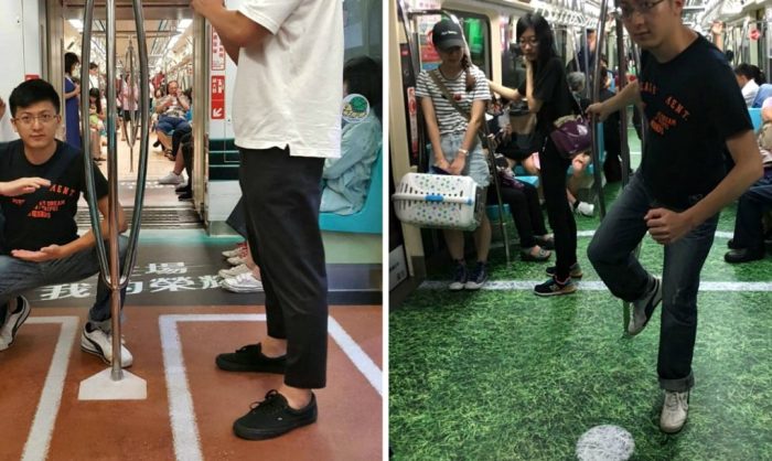 Гиперреалистичное напольное покрытие в вагонах метро в Тайбэе.