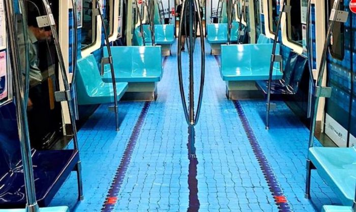 Оригинальные напольные покрытия в вагонах метрополитена Тайбэя.