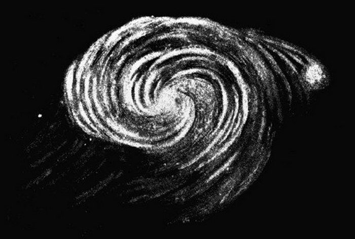 Зарисовка галактики Водоворот 3-им графом Росс в 1845 году, которая была сделана на основе наблюдений с использованием Левиафана.