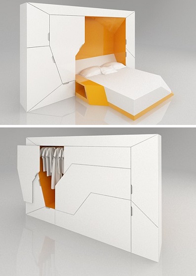 Латвийский дизайнер Роландс Ландсбергс (Rolands Landsbergs) специализируется на проектировании экономящей место футуристической мебели Boxetti. К примеру, Boxetti Private – это модульная спальня, включающая двуспальную кровать, ночной столик и шкаф для одежды. Кроме того, мебельный аппарат оборудован лампами точечного освещения. А благодаря пульту дистанционного управления сложить «платформу» для сна так же просто, как включить телевизор. В шкафу есть все необходимые отделения – от полочек и ящиков до платяной вешалки. Спальню в стиле фильмов про будущее можно приобрести на официальном сайте производителя за € 7866 (около $ 10438). В коллекции Роландса также есть складные кухня, гостиная и рабочий кабинет.
