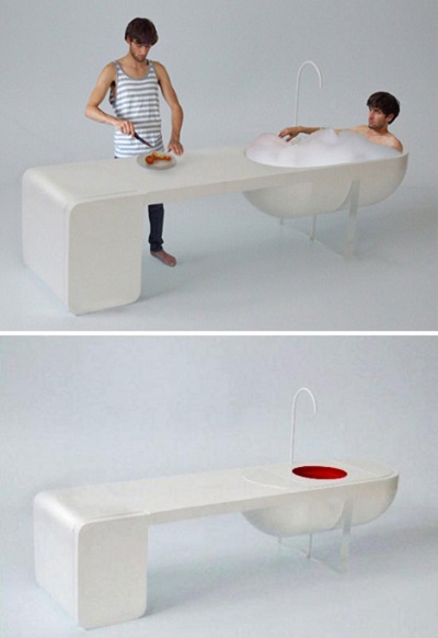 Филипп Мэлоун (Philippe Malouin) предпочитает расширять пространство нестандартными и спорными, с точки зрения критиков, методами. Разработанный Филиппом концепт практически универсальной мебели Unit предполагает объединение кухни… с ванной комнатой. Длинный стол для кулинарных экспериментов и приема пищи соединен с холодильником и раковиной. Если с мойки снять часть «столешницы», место для мытья посуды трансформируется в полноценную ванну.